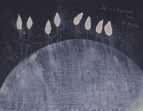 Die naiv gemalten Bilder der autodidakten Künstlerin bringen ihre Sehnsucht und ihren Freiheitsdrang zum Ausdruck.