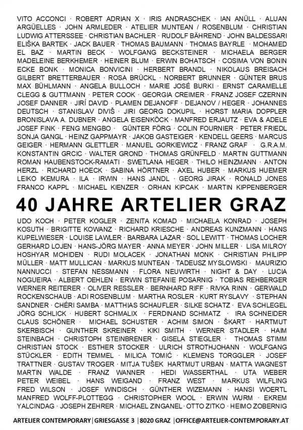 Eduard Angeli, Aljoscha, Linda Berger, Herbert Brandl, Gunter Damisch, Franz Grabmayr, Sabrina Horak, Karl Korab, Herbert Lippert, Harding Meyer, Otto Mühl, Hermann Nitsch, Michael Ornauer, Markus Prachensky, Franz Ringel, Hubert Scheibl, Hubert Schmalix, Peter Sengl, Victor Vasarely, u.v.m.